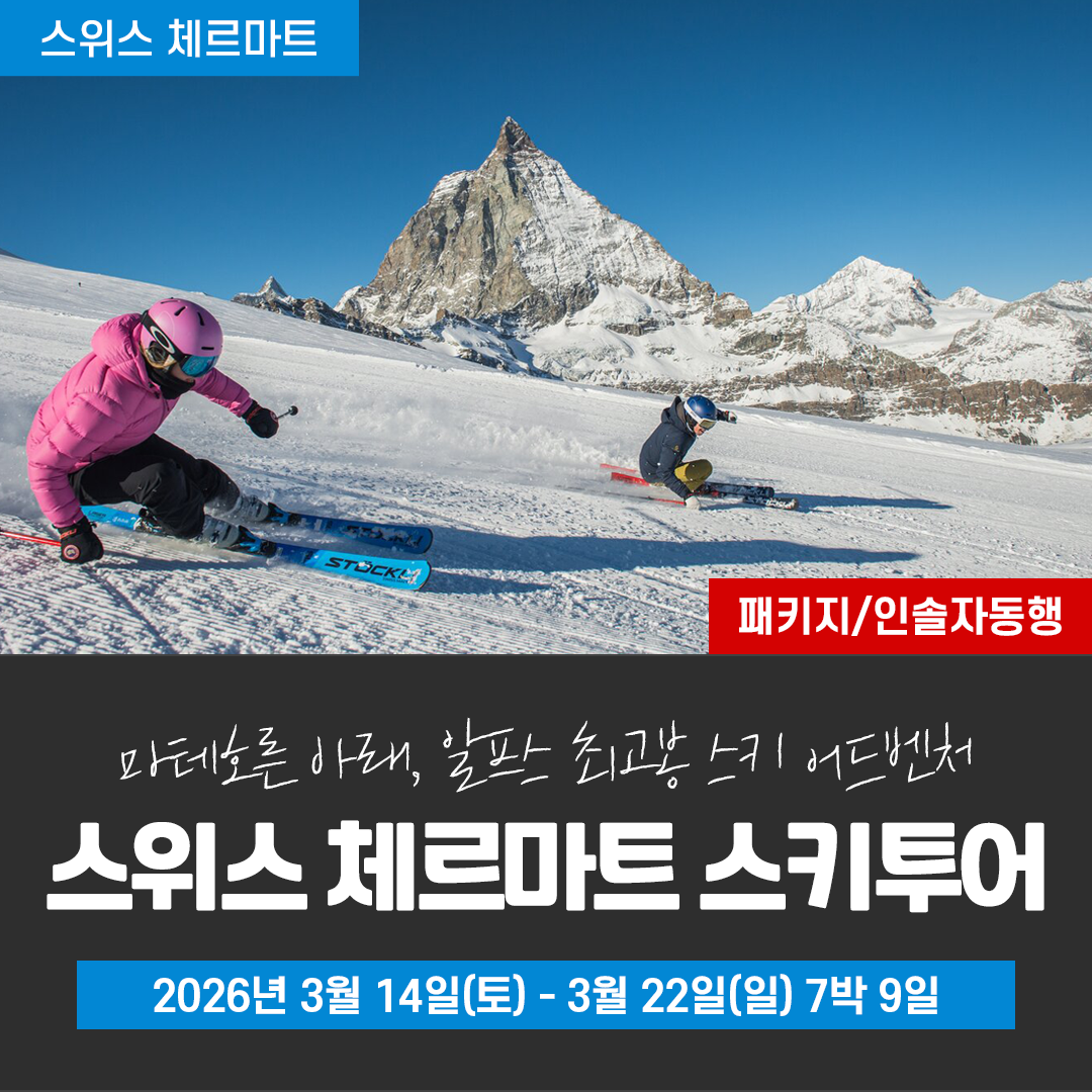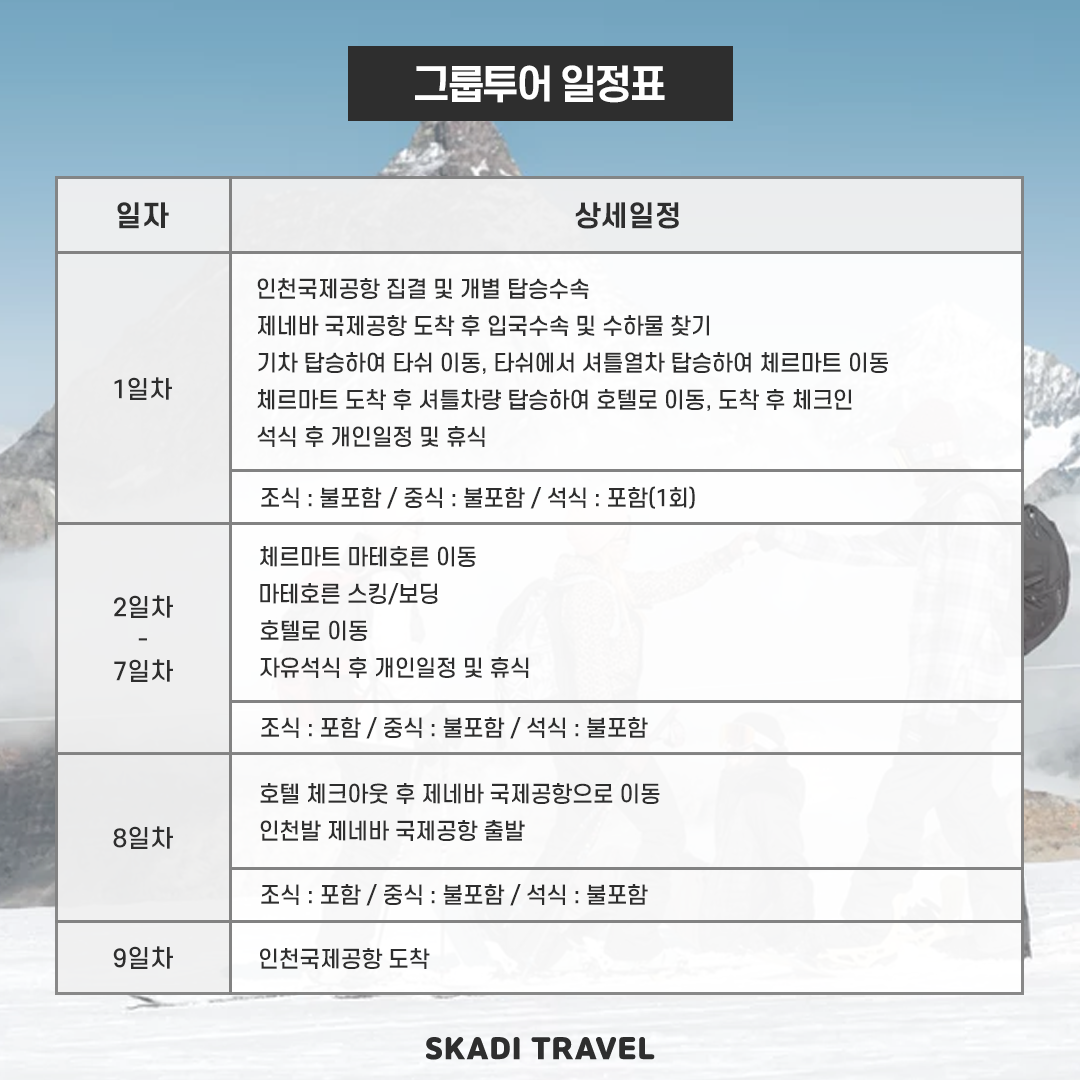 | 체르마트+밀라노10박 [4성급호텔] | 7박 9일 | 0859 | 8,590,000원 |