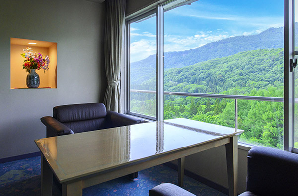 천욕을 즐길 수 있는 대욕장에서는 스키 후 피로를 말끔히 풀 수 있으며, 지역 특산 식재료를 활용한 가이세키 요리 또는 뷔페식 식사도 즐기실 수 있습니다.