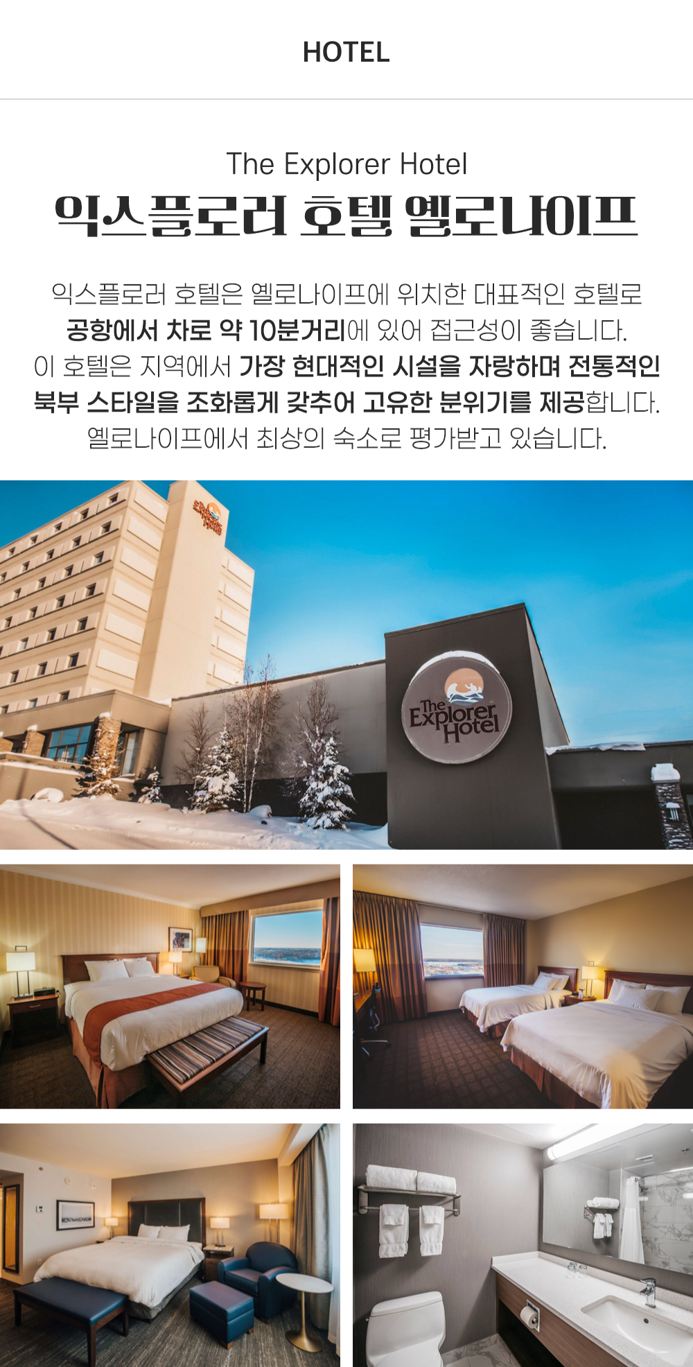 옐로나이프 호텔에서 각각 픽업을 해서 약 4시간 동안 펼쳐지는 캐나다 북서부의 신비로운 오로라를 감상합니다.