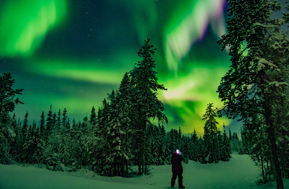 옐로나이프 전역에 펼쳐지는 오로라 중에서 그날의 베스트를 선정해서 관측하러 빠르게 이동할 수 있습니다.