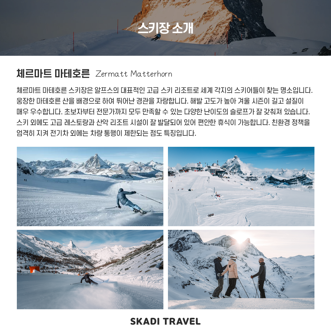 체르마트 스키장은 해발 약 1,620m에 위치하며, 유럽에서 가장 높은 스키 지역 중 하나입니다.