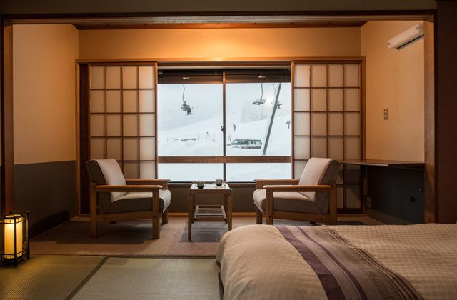 천욕을 즐길 수 있는 대욕장에서는 스키 후 피로를 말끔히 풀 수 있으며, 지역 특산 식재료를 활용한 가이세키 요리 또는 뷔페식 식사도 즐기실 수 있습니다.