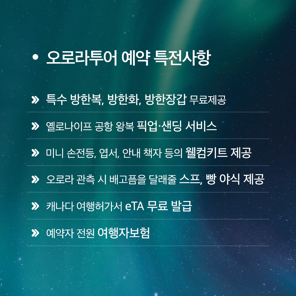 하늘을 수놓는 오로라를 편안하게 감상할 수 있습니다.