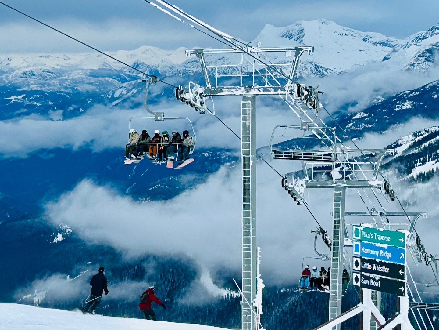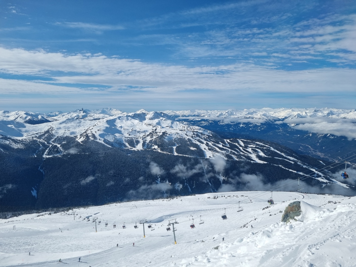 휘슬러와 블랙콤은 나란히 놓인 두 개의 산으로, 200개가 넘는 코스, 8,171에이커의 지형, 16개의 고산지대, 3개의 빙하를 합친 것으로 연간 1,036m의 눈이 내린다.