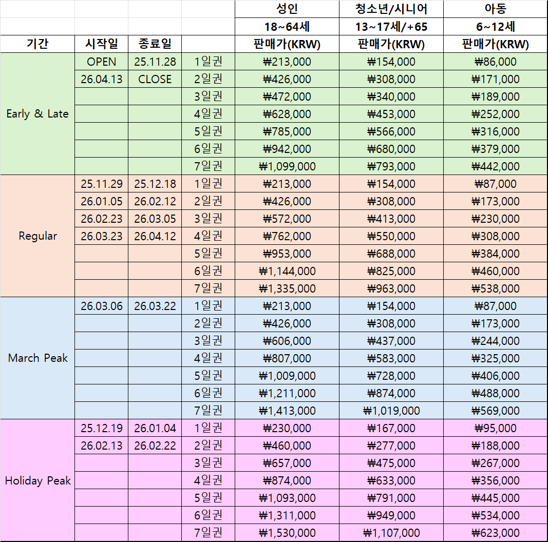 | SKIBIG3 리프트티켓 4일권 | 628,000원 | 453,000원 | 252,000원 |
